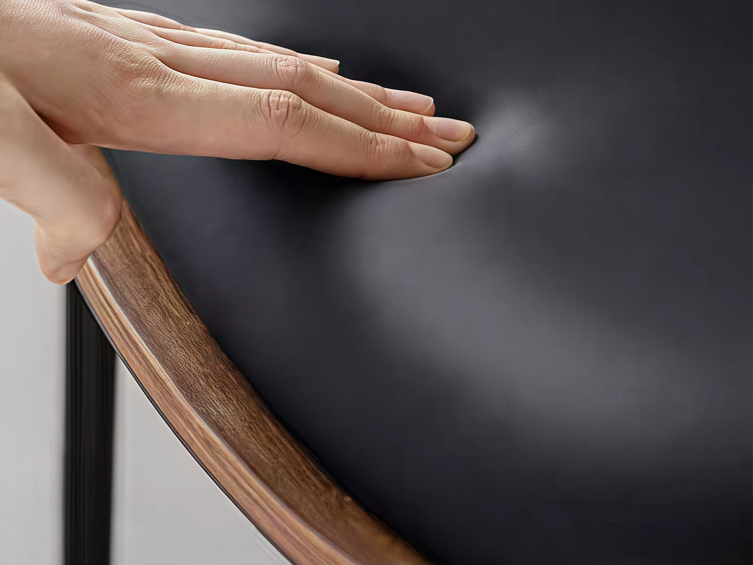 Designed for both comfort and durability, it is upholstered in premium microfiber leather with high-density foam padding, offering a plush yet supportive seat for extended sitting. The sturdy solid wood bent board and robust carbon steel frame ensure exceptional stability and a strong weight capacity, making it ideal for daily use.
