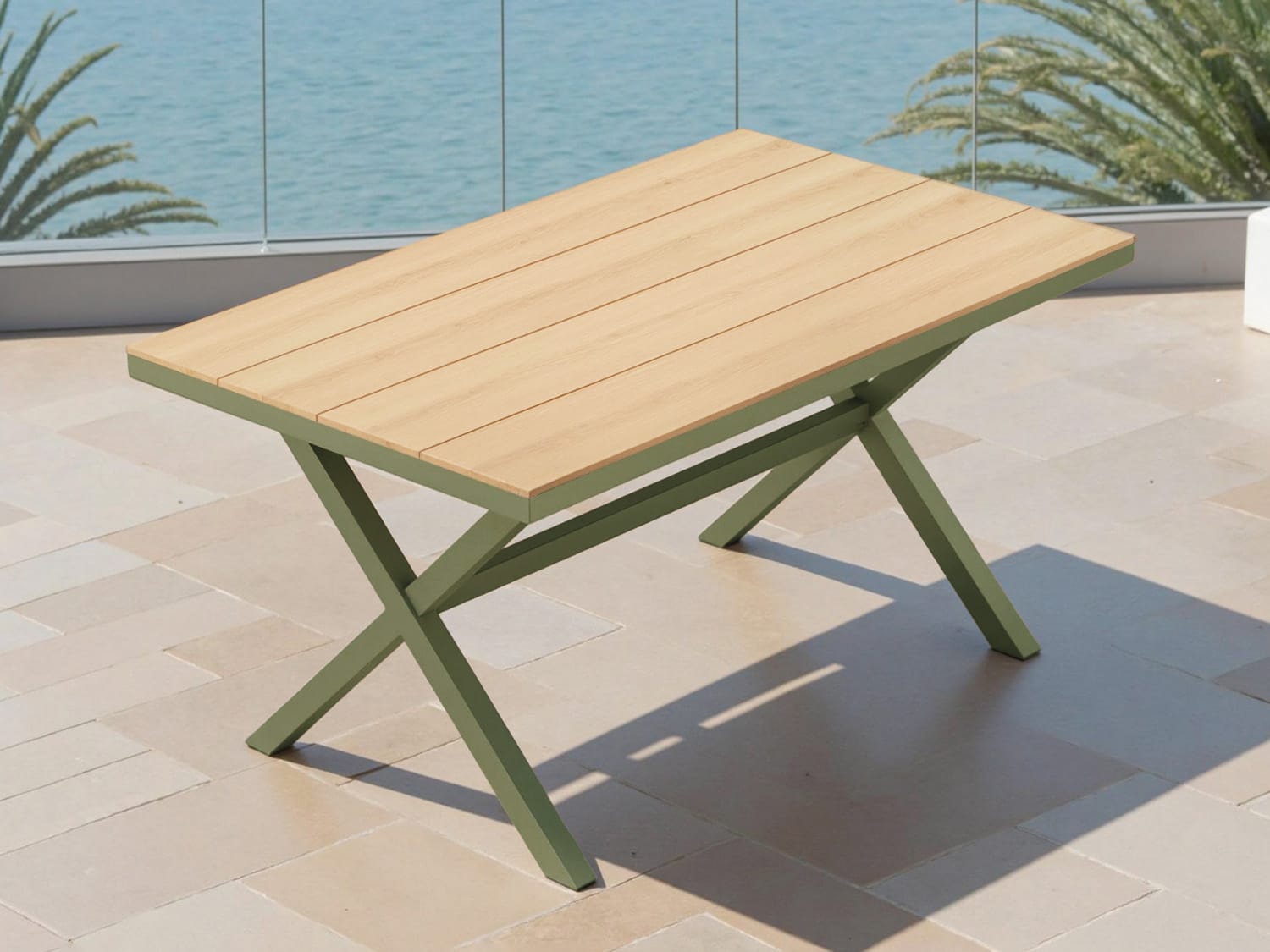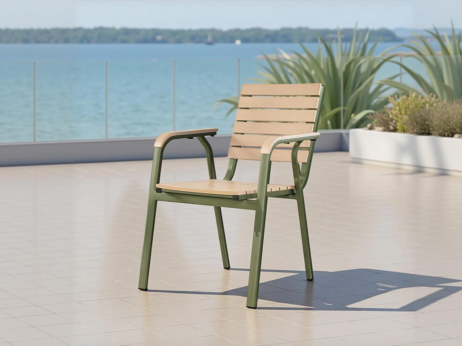 Zagora Outdoor WPC Top with Aluminium Frame Dining Set-With 4 Chairs-Olive Green